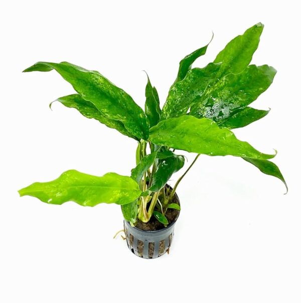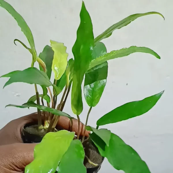Anubias glabra is a hardy, slow-growing aquatic plant known for its narrow, dark green, lance-shaped leaves and easy care, originating from West African rainforest streams. It prefers low to medium light and doesn’t require CO2, growing best when attached to wood or rocks to keep its rhizome from rotting. This makes it an excellent, low-maintenance choice for both beginner and experienced aquarists looking for a minimalist, natural aesthetic.